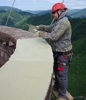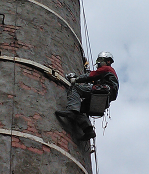 Проведение ремонта дымовых труб при помощи промышленных альпинистов